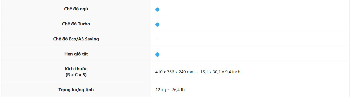 - Tính năng hẹn giờ tắt máy với 3 khoảng thời gian: 1 giờ, 4 giờ và 8 giờ